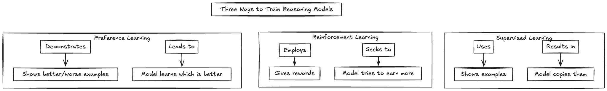 With vast quantities of high-quality training data, rather than simply prompting models to show their reasoning (as in Chain-of-Thought approaches), researchers began developing techniques to train models to have explicit reasoning processes.